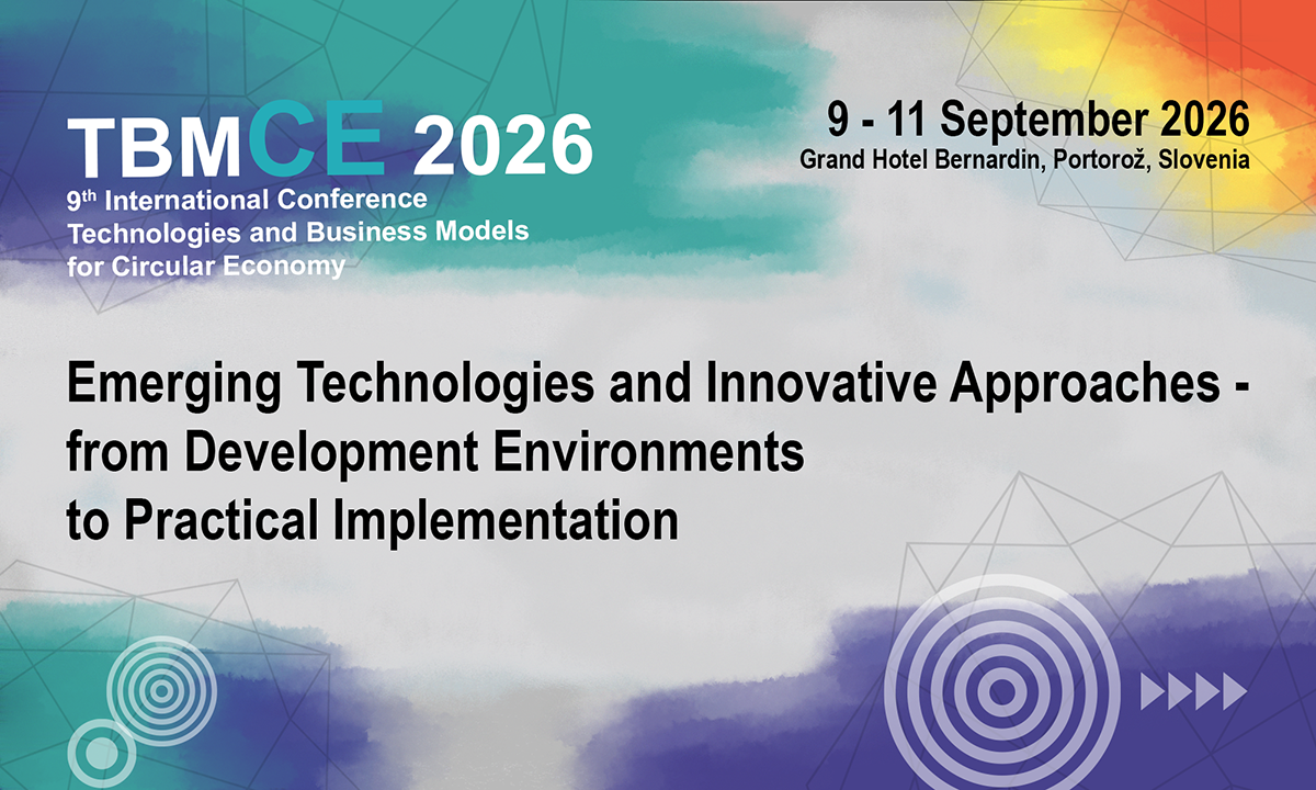 We are pleased to announce that the Faculty of Chemistry and Chemical Engineering at the University of Maribor, in cooperation with SRIP – Circular Economy, managed by the Chamber of Commerce and Industry of Štajerska, will once again organize the international scientific, professional and development conference Technologies and Business Models for Circular Economy – TBMCE 2026, which will take place from September 9 to 11 at the Grand Hotel Bernardin.